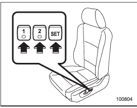 • When any trouble or a malfunction occurs during the retrieval of the seat position, stop the retrieval of the seat position using any of the control switches for manual adjustment, seat memory set button, seat memory registered button 1 or 2.