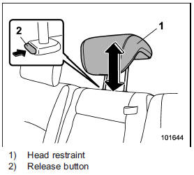 Push the head restraint down while pressing the release button on the top of the seatback.