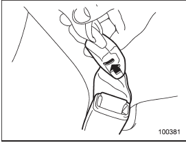 When fastening the belt after it is pulled out from the retractor, especially when inserting the connector’s tongue plate into the mating buckle (on right-hand side), always check that the webbing is not twisted.